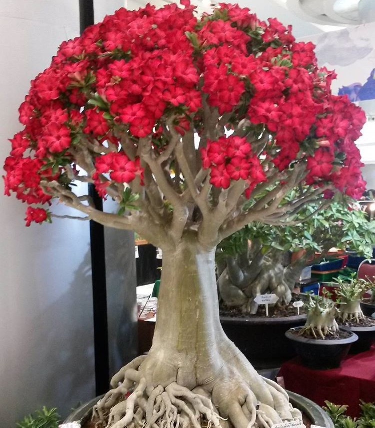 The best time for pruning is at the seedling stage. When the seedling reaches about twenty centimetres in length, it should be topped to promote branching. And after the already formed desert rose has bloomed it should be pruned again, preferably with small branches, if the pruned branches are too thick, it is easy to rot because the cut is too big, and it is attacked by rainwater and disease. After pruning the desert rose, we can use 2% copper sulfate solution to disinfect, and also can apply some wax oil to reduce the contact with the air.