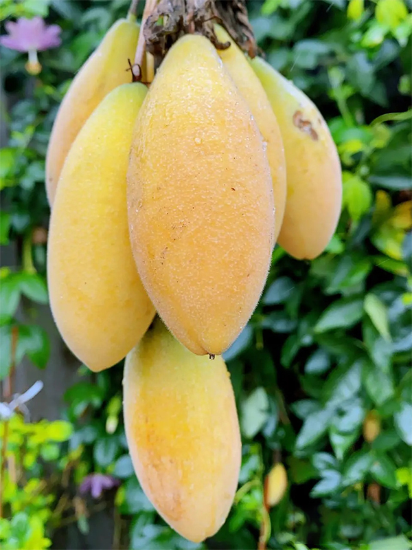 Compared with several main cultivated varieties, banana passion fruit is more cold-resistant and can withstand low temperatures of -5°C; the fruit is sweeter. "The maximum yield is 400 to 500 fruits, and the flowers are very beautiful. It is known as one of the most delicious passion fruits. It can bear fruit in the first year of planting, and usually enters the peak production period in the second year.