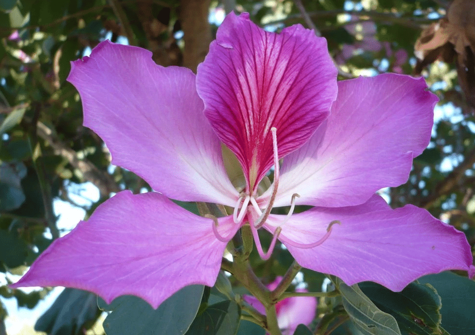 Growing orchid trees are easily recognized by their twin lobed leaves, which have been described as butterfly-like or Texas style– like the print of a cloven hoof.