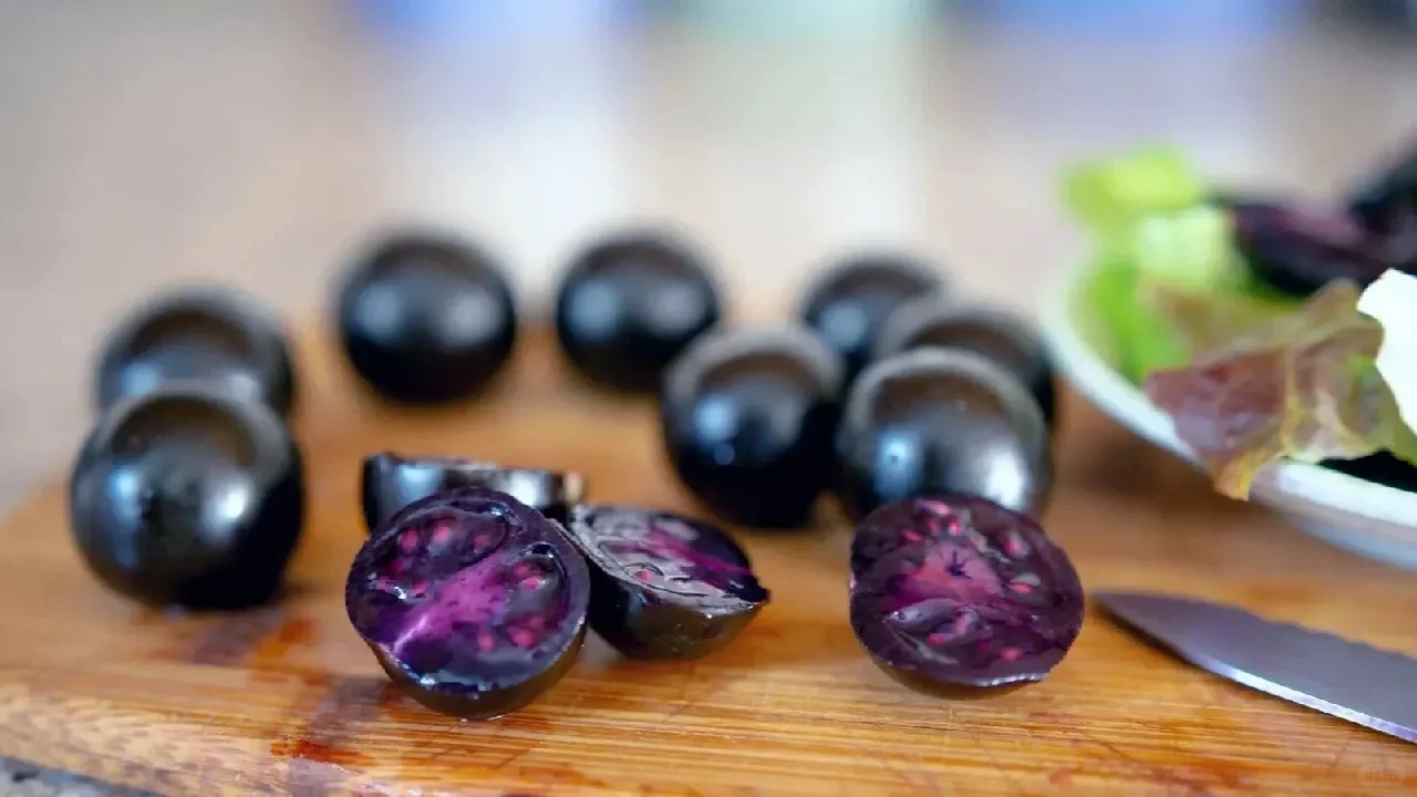 Black Rose Tomato is a newly bred characteristic tomato variety with unlimited plant growth, strong disease resistance, round fruits, purple-black when mature, and a single fruit weight of about 50 grams. It has good flavor and can be planted on the ground or in pots.