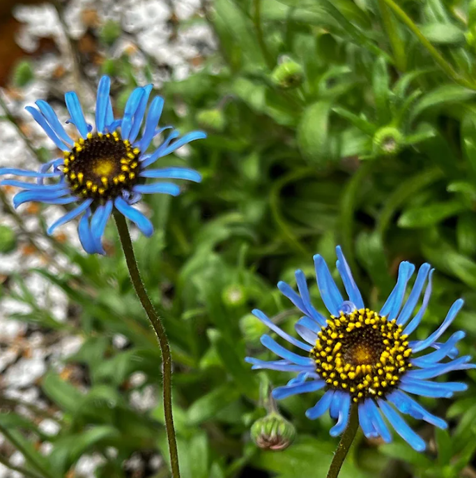True Blue Daisy, also called Kingfisher Daisy, is an annual plant which grows 20 to 30 centimetres in height, featuring heavily branched shoots that produce azure blue flowers that are very typical for this daisy variety. True Blue Daisy, which can be used as a plant following forget-me-nots after they have stopped flowering, looks exceptionally beautiful in small flower beds or planters.